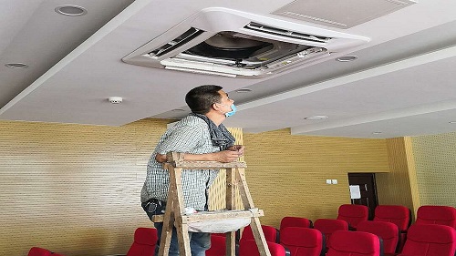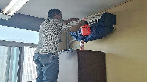 校区指派专人对办公室、教室空调逐台检查,经统计,共有69台老旧空调普遍存在过滤网、进出风口过脏等隐患和问题。