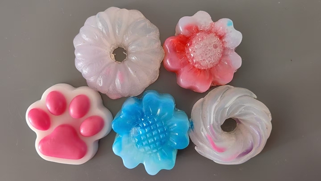 经过一个多小时的努力,一个个造型别致的手工精油皂相继诞生。看着亲手制作的成果,老同志们成就感满满,纷纷拍照留念。