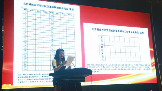 接着,大会进行了第五届校区分工会委员会和校区教代会的换届选举,由校区党委副书记马永春报告了换届选举工作的筹备及候选人资格审查情况,并举手表决通过了选举办法、计票人、监票人和总监票人名单。大会以无记名投票方式,差额选举产生了新一届校区分工会委员会委员和校区教代会代表。