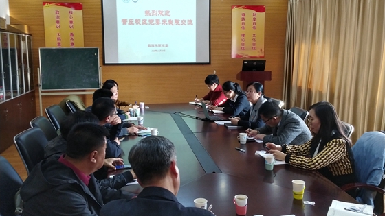 张俊燕同志从加强党的思想建设、组织建设、制度建设、党风廉政建设等方面,全面介绍了数理学院党组织建设的思路、做法和经验以及学院工作取得的成效。“首批全国党建‘双创’样板支部培育创建单位”党支部书记赵金玲同志围绕“实施四个计划落实七个有力”的主题,详细介绍了党支部创建样板支部的思路、重点任务完成情况、“传帮带”的特色做法以及获得的工作成果。数理学院基层党建工作的方法、措施和体会,给校区的同志们带来极大的启迪。