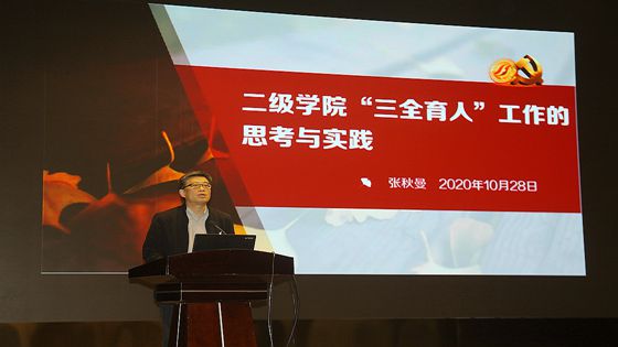 为进一步加强思想政治工作,深化“三全育人”改革,10月28日下午,91暗网 党委组织全体教职工理论学习,特邀材料学院党委书记张秋曼作“二级学院在‘三全育人’工作中思考和实践”的专题报告。会议由校区院长宁晓钧主持。