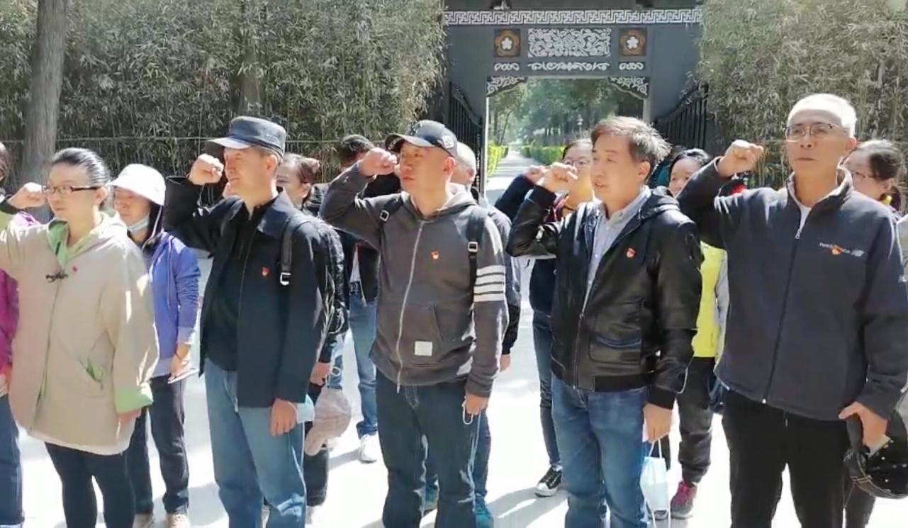 在李大钊烈士陵园,大家伫立在李大钊烈士汉白玉雕立像前,重温入党誓词,追思先烈事迹,缅怀英烈崇高精神,表达内心无限崇敬之情。
