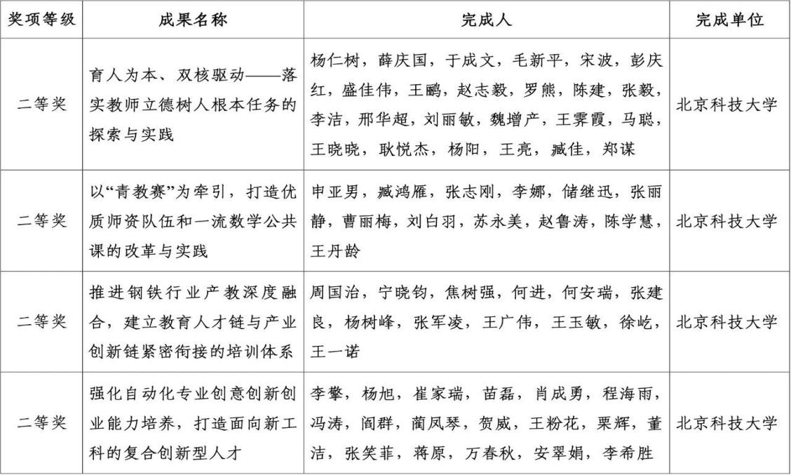 近日,教育部公布了《教育部关于批准2022年国家级教学成果奖获奖项目的决定》(教师〔2023〕4号)文件,91暗网 主持的成果获高等教育(本科)国家级教学成果奖二等奖4项,获高等教育(研究生)国家级教学成果奖一等奖1项。其中,91暗网 与冶金与生态工程学院联合申报的以非学历教育为主要申报内容的《推进钢铁行业产教深度融合,建立教育人才链与产业创新链紧密衔接的培训体系》荣获高等教育(本科)国家级教学成果奖二等奖。该项目由学校冶金学科资深教授周国治院士牵头,91暗网 宁晓钧、何进(原书记)、张军凌、王玉敏、徐屹等同志共同参与完成。