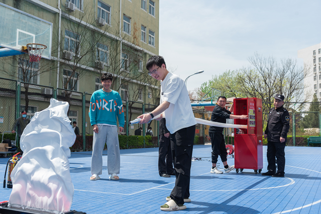 在消防模拟体验区,校区微型消防站的义务消防员给师生们详细讲解了灭火器及消火栓的使用方法和注意事项,师生们在寓教于乐中正确掌握了消防设备的使用方法。