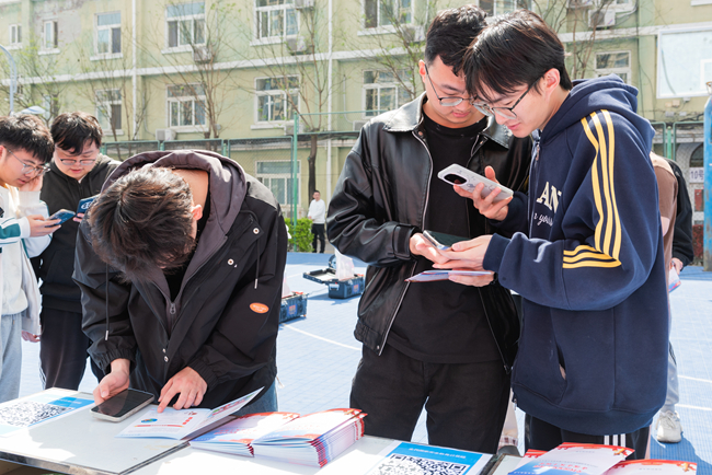在国家安全知识竞赛答题区,同学们积极踊跃参与,纷纷拿出手机进行扫码答题,在巩固国家安全知识的同时也让同学们深刻认识到维护国家安全与每个人息息相关。
